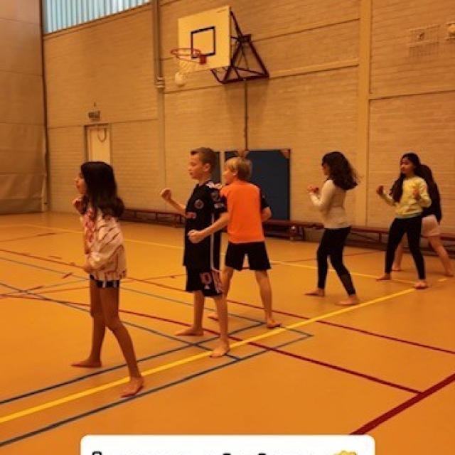 Karateka’s Sebastiaan van Teeffelen (19 jaar) en Ashley Kakiay (19 jaar) hebben in Hoofddorp 350 kinderen in beweging gezet. De leerlingen van basisschool de Optimist hebben geleerd hoe ze moeten stoten en hoe een plankje doormidden kunnen slaan. Het enthousiasme van de kinderen was enorm, want een plankje doormidden slaan kan tenslotte niet iedereen.